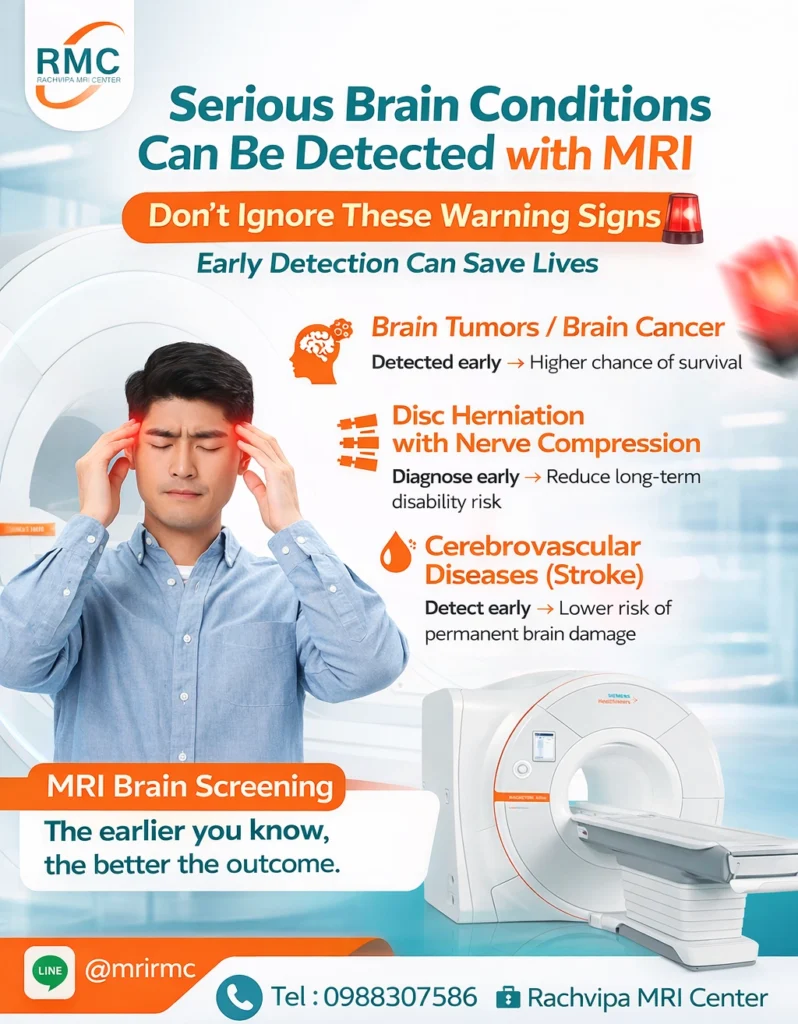MRI can detect abnormalities of the brain and nervous system from an early stage. It helps accurately diagnose serious conditions such as brain tumors, cerebrovascular diseases (stroke), and herniated discs compressing nerves. Early detection increases the chances of effective treatment and reduces the risk of future complications.